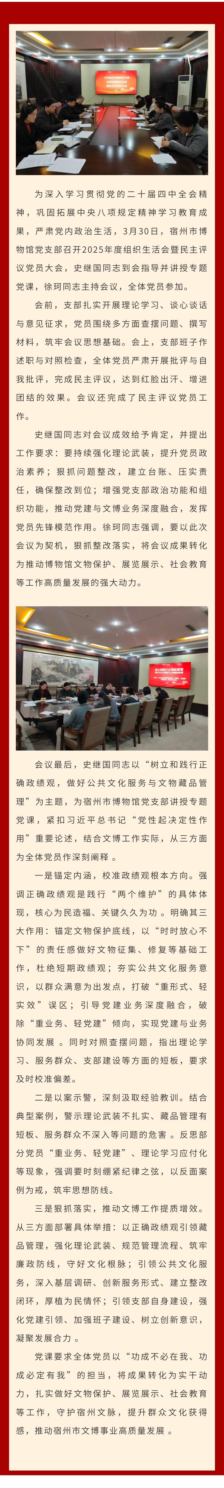 市博物馆党支部召开2025年度组织生活会暨民主评议党员大会 史继国同志到会指导并讲授专题党课